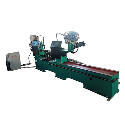 該機適用于帶式輸送機托輥等管狀工件的外環焊縫的焊接,采用CO2或混合氣體為保護介質配以2臺CO2氣體保護焊,采用機械和液壓進行自動傳動,收弧自動搭接。電器控制采用“PLC”進行自動控制,操作簡單、可靠性強,除人工上、下料其余全部過程自動進行。